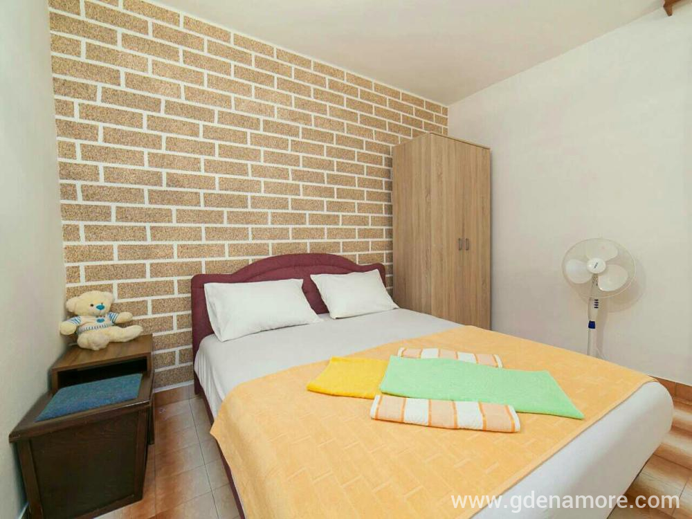 Ovaj apartman ima jednu spavacu sobu sa bracnim krevetom, krevet za samca + krevetac za bebe, dnevni boravak sa dva trosjeda na rasklapanje koji mogu sluziti kao lezaj, opremkjenu kuhinju i kupatilo sa opremom. S obzirom na to da se nalazi u prizemlju ovaj apartman ne posjeduje klima uređaj vec s...